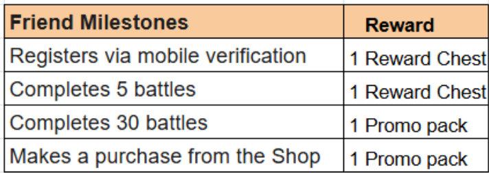 You get Reward Chests and packs as and when your invited friends register and battle on Virbhumi through your invitation link/code.